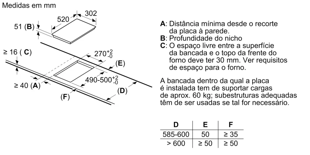 Altura do aparelho acima da bancada 6.0 mm