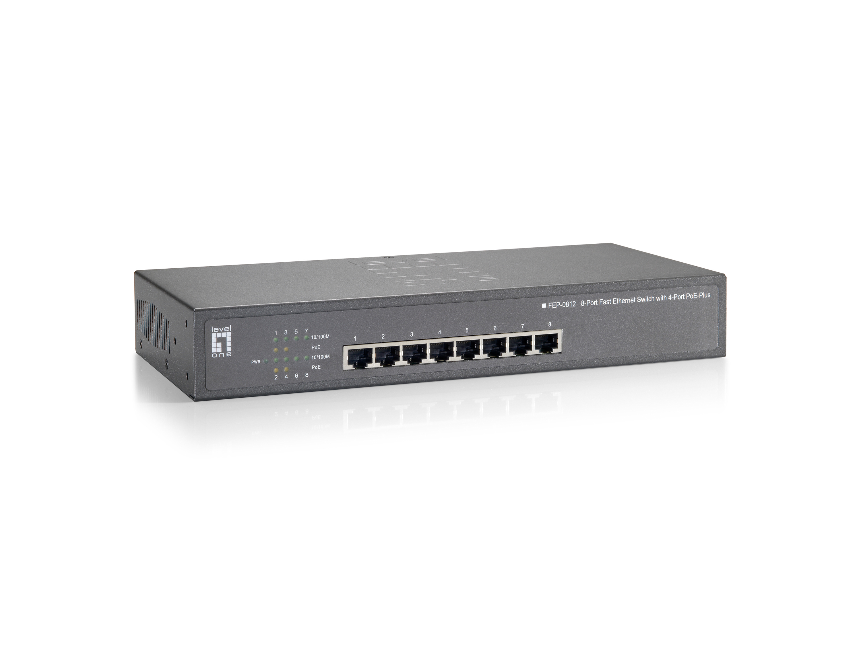 LevelOne FEP-0812. Tipos de portas ethernet Basic switching RJ-45: Fast Ethernet (10/100), Tecnologia de cablagem ethernet de cobre: 10BASE-T,100BASE-TX. Normas de Comunicações: IEEE 802.3,IEEE 802.3af,IEEE 802.3at,IEEE 802.3u,IEEE 802.3x. Tamanho da tabela de endereços MAC: 1024 entradas, Capacidade de routing/switching: 1,6 Gbit/s, Velocidade de redirecionamento de pacotes (100 Mbps): 148000 pps. Cor da caixa: Preto, Visor com LED duplo: Atividade, LAN, PoE, Pó, Material do corpo do produto: Metal. Tamanho da memória intermédia: 64 KB > redes switch17990NovoProduto LimitadoLevelOne FEP-0812. Tipos de portas ethernet Basic switching RJ-45: Fast Ethernet (10 100), Tecnologia de cablagem ethernet de cobre: 10BASE-T,100BASE-TX. Normas de Comunicações: IEEE 802.3,IEEE 802.3af,IEEE 802.3at,IEEE 802.3u,IEEE 802.3x. Tamanho da tabela de endereços MAC: 1024 entradas, Capacidade de routing switching: 1,6 Gbit s, Velocidade de redirecionamento de pacotes (100 Mbps): 148000 pps. Cor da caixa: Preto, Visor com LED duplo: Atividade, LAN, PoE, Pó, Material do corpo do produto: Metal. Tamanho da memória intermédia: 64 KB