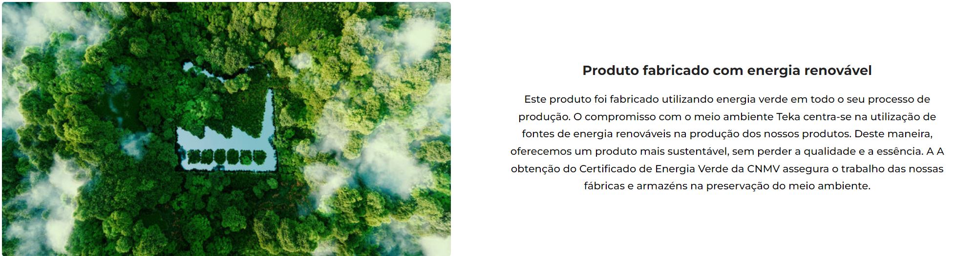 O compromisso com o meio ambiente Teka centra-se na utilização de fontes de energia renováveis na produção dos nossos produtos.