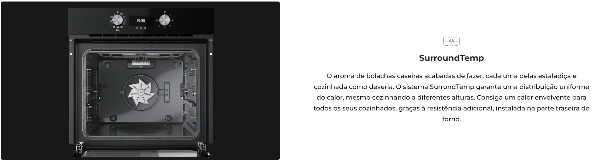 O sistema SurrondTemp garante uma distribuição uniforme do calor, mesmo cozinhando a diferentes alturas.