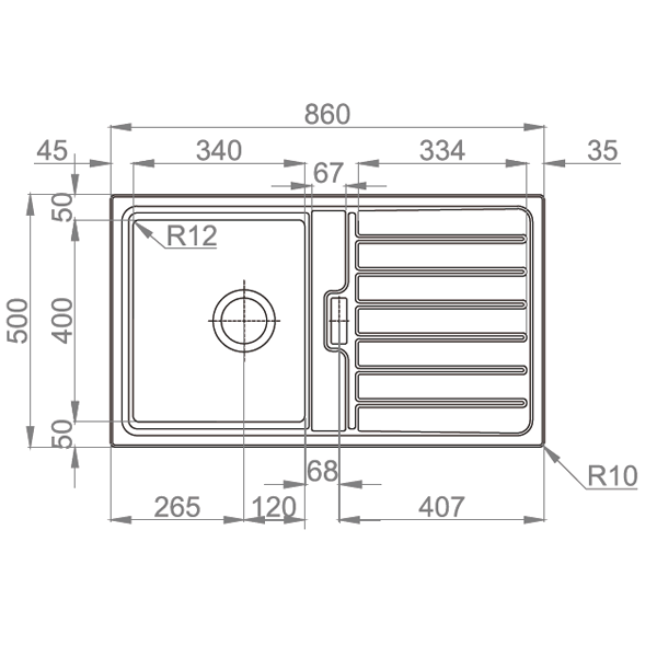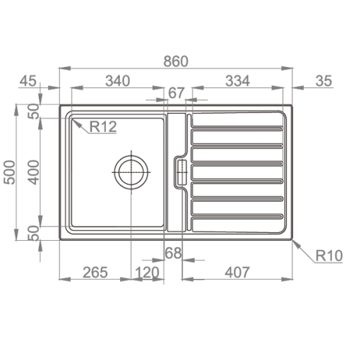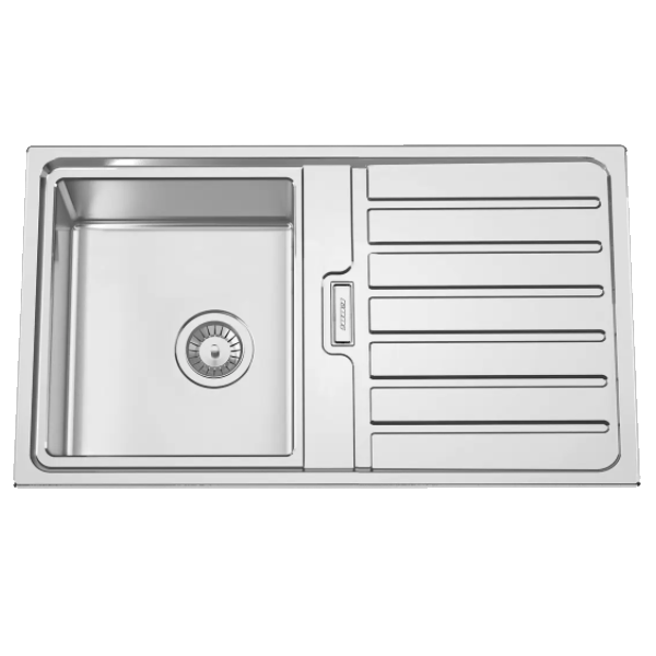 Medida externa: 860x500mm | Medida cuba: 340x400mm | Profundidade: 200mm | Móvel: 600mm | Acabamento: Escovado | Aplicação: Encastrar | Inclui: Sifão/válvula manual de cesta > lava loiças34990NovoProduto disponível€ 349.90