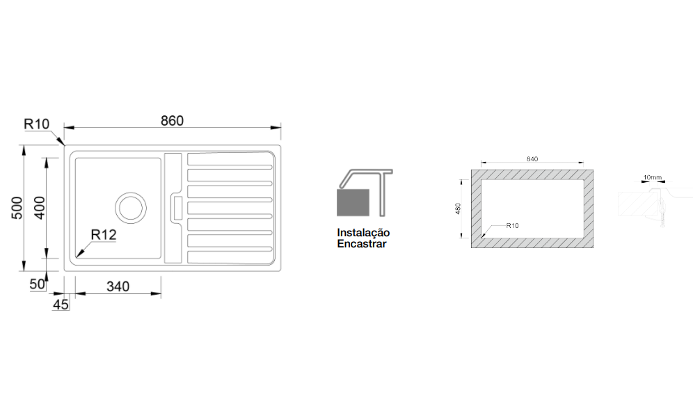 Medida externa: 860x500mmMedida cuba: 340x400mmProfundidade: 200mmMóvel: 600mmAcabamento: EscovadoAplicação: EncastrarInclui: Sifão válvula manual de cesta