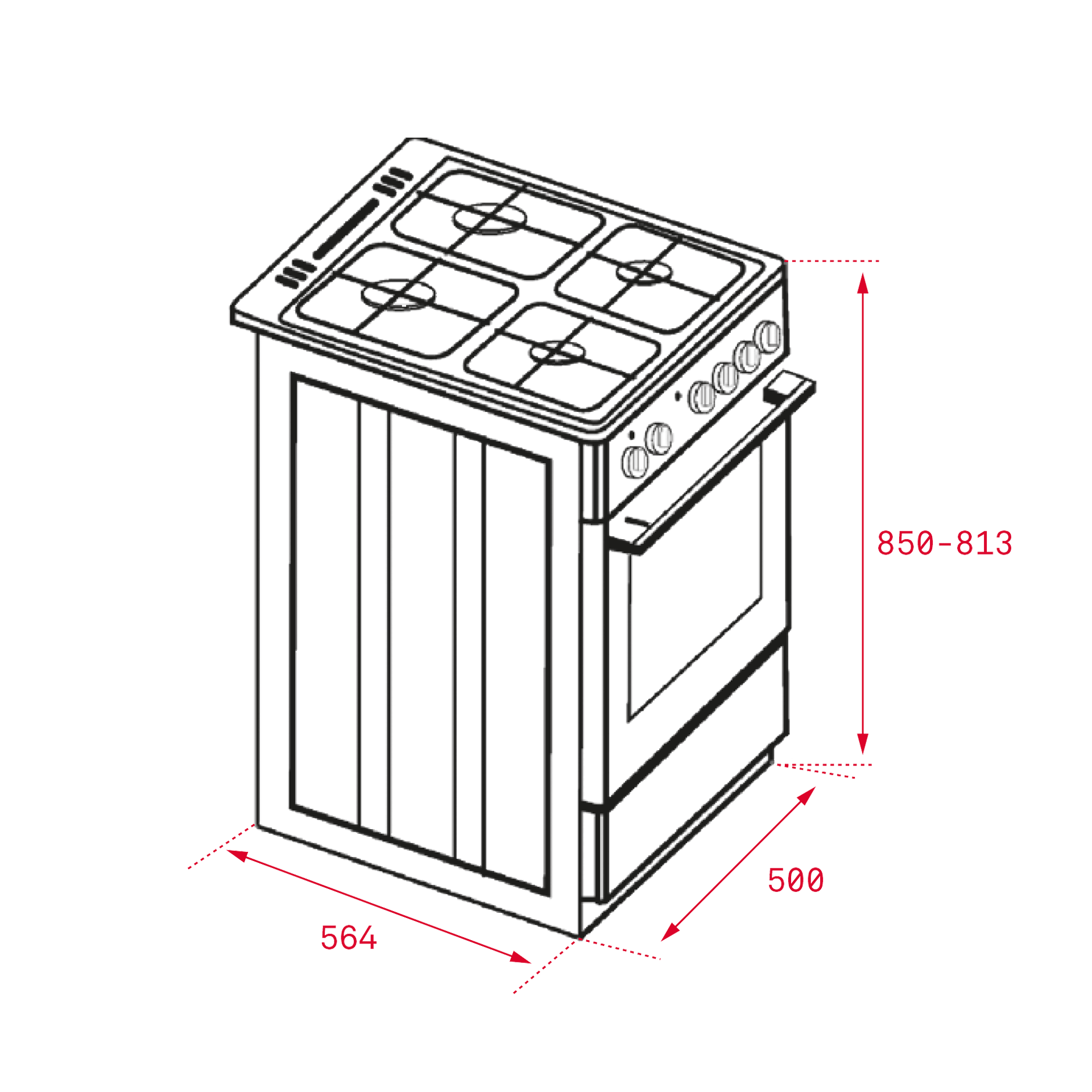 Tamanho do forno: Pequeno, Fonte de energia do forno: Gas, Capacidade líquida do forno: 43 l.