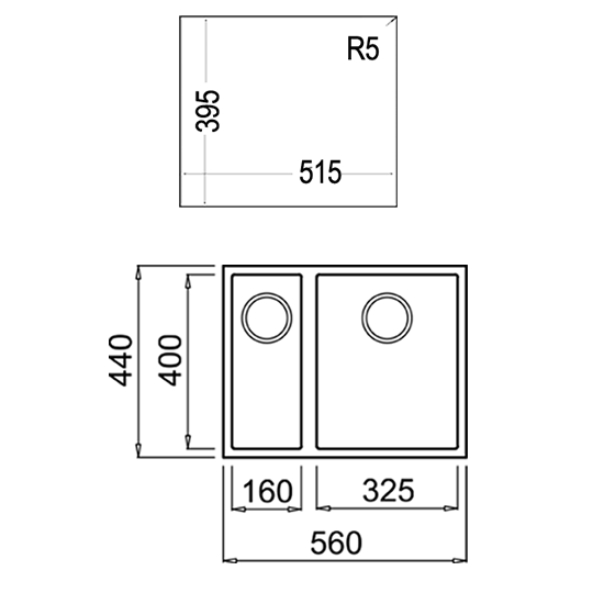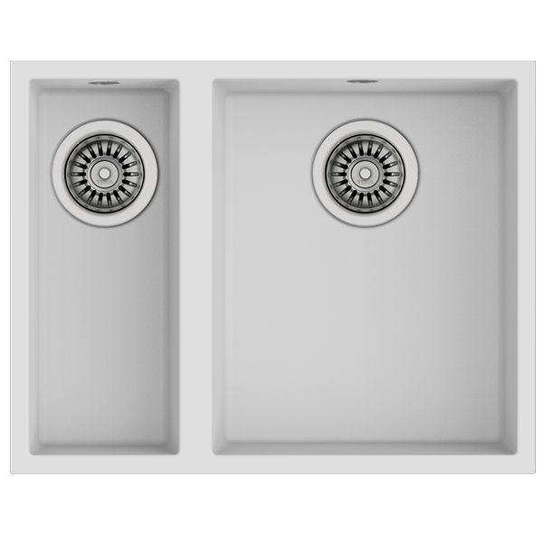 - Cor: Branco, Escorredor Não, Largura: 56 cm, Material: Tegranito, Número de Cubas 2