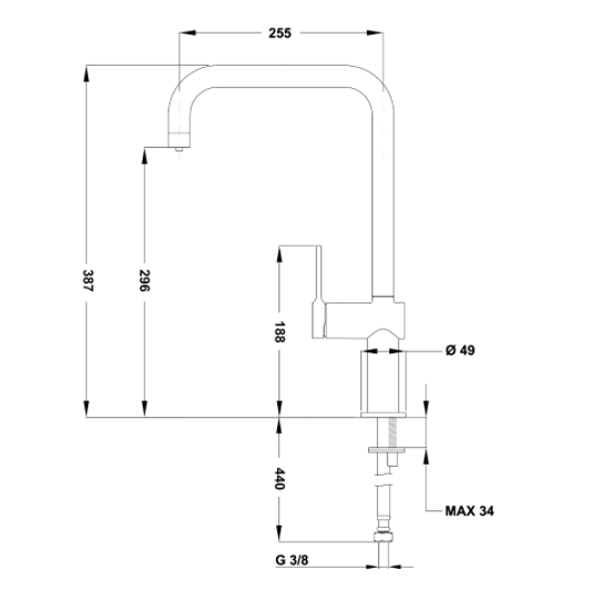 Altura acima da superfície de encaixe (máx.): 38,7 cm, Distância do topo da saída de água até à superfície de encaixe: 29,6 cm