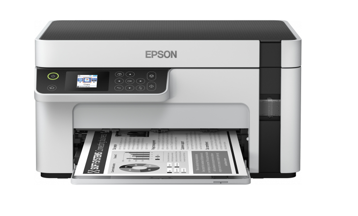 Epson EcoTank - Impressora Multifunções 3 em 1 | Formato Máximo A4 | Velocidade de impressão (ISO24734): Mono 15 ppm | Tempo até à 1ª página: 8 seg. | Garantia: 12 Meses ou 100.000 páginas | Inclui 1 recarga de tinta para 5.000 páginas a preto. - ET-M2120