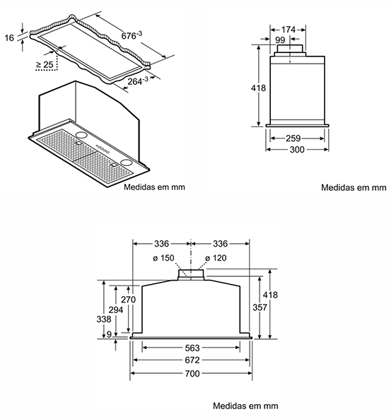 Largura do compartimento de instalação: 26,4 cm