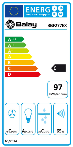 Classe de eficiência energética: C, Potência do motor: 250 W, Consumo de energia anual: 97 kWh.