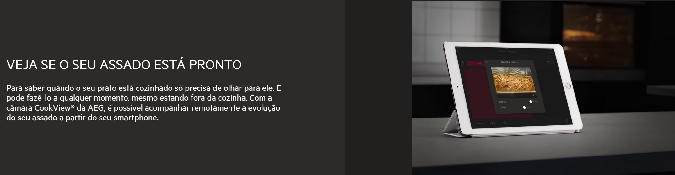 Com a câmara CookView® da AEG, é possível acompanhar remotamente a evolução do seu assado a partir do seu smartphone.