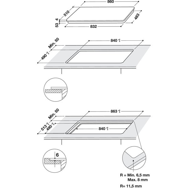 Placa Inducao Encastre WHIRLPOOL SMP9010C/NE/IXL 6 x 86 x 51 Cm