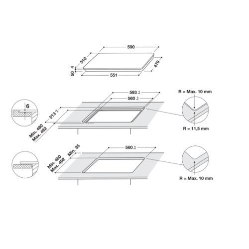 Placa Inducao Encastre HOTPOIN HQ2960SNE 6 x 59 x 51 Cm