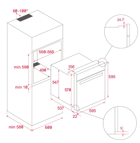 Profundidade do produto (mm): 537+22