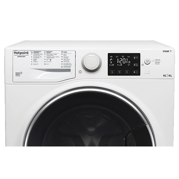 Esta máquina de lavar e secar roupa de livre instalação Hotpoint tem: excelente capacidade de lavagem de 9,0 kg.