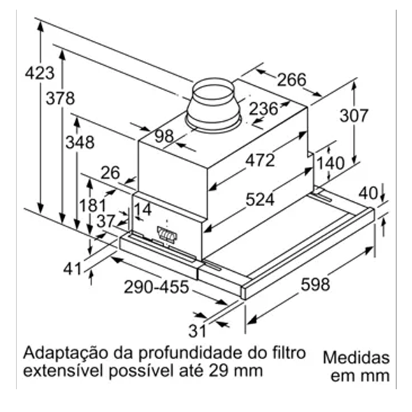 - Potência exaustão: 935 m3/h, Cor: Inox + Preto, Eficiência Energética: A, Largura: 60 cm, Nível ruído: 57 dB(A)
