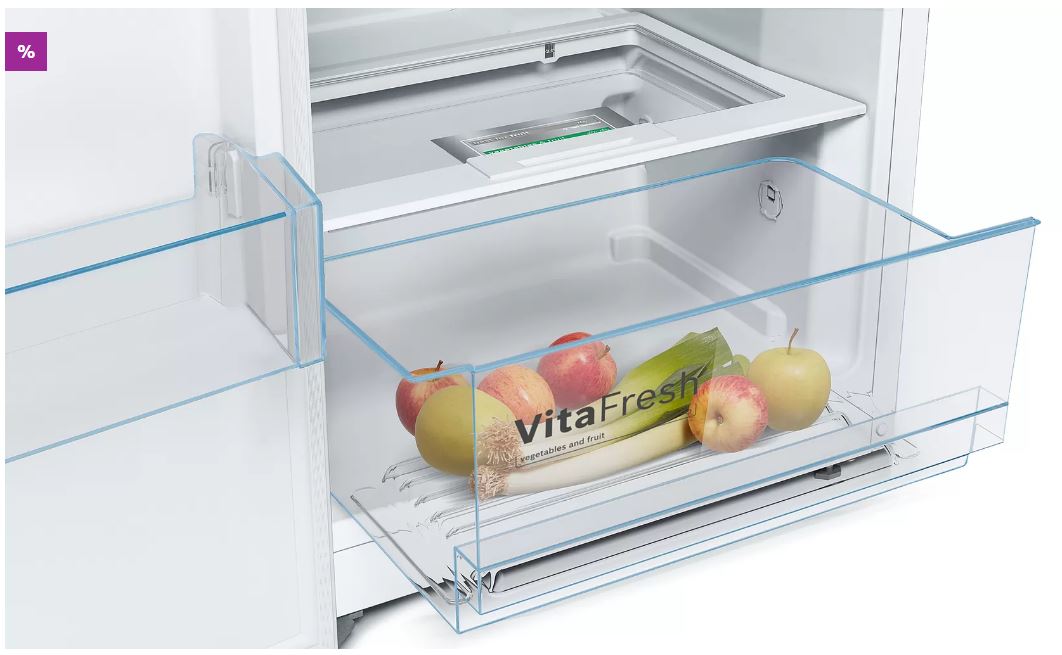O frigorífico com gaveta VitaFresh que conserva com muita eficiência - graças à gaveta VitaFresh, as frutas e os legumes mantêm-se frescos durante mais tempo.