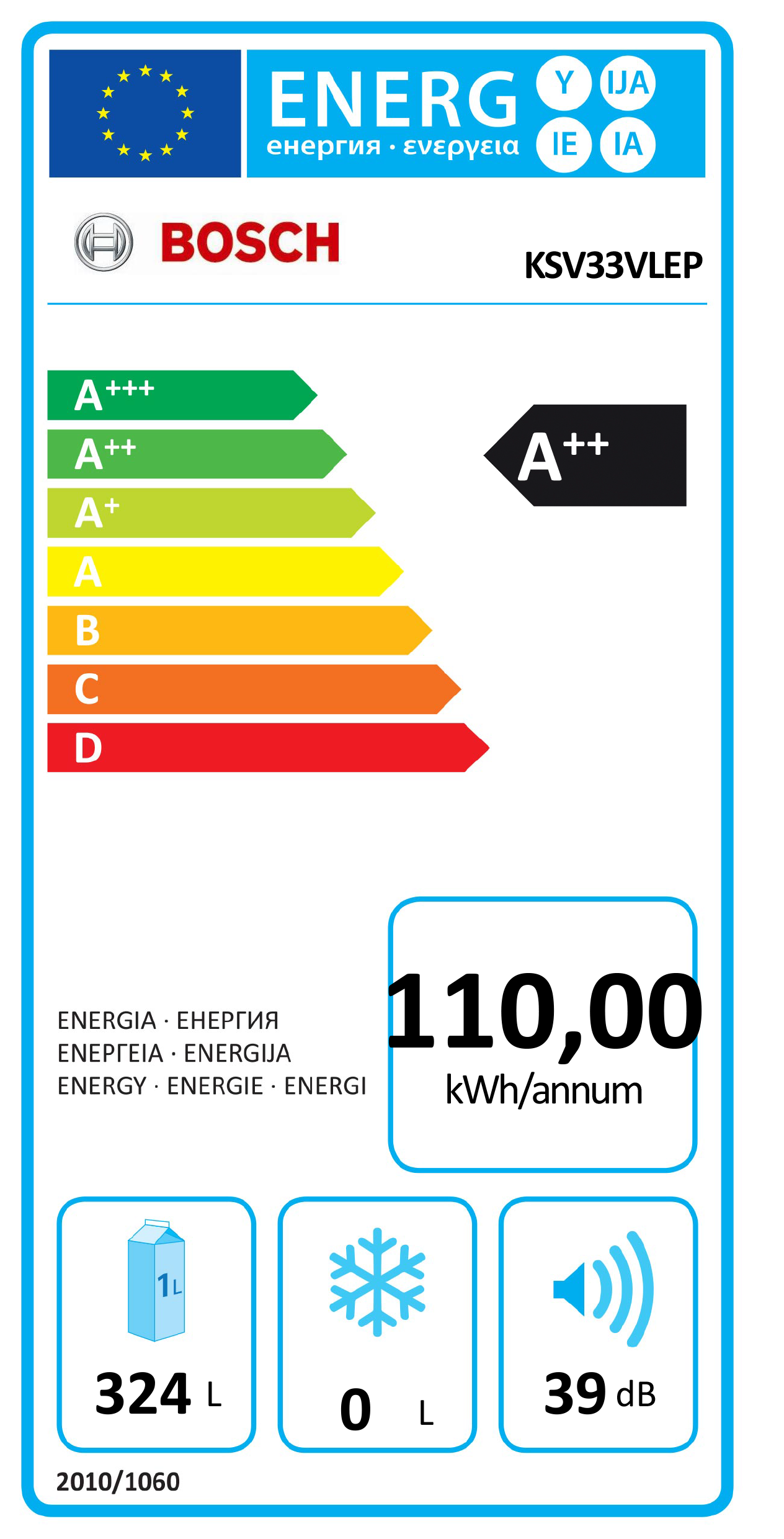 Soma do volume dos compartimentos de refrigeração 324 l