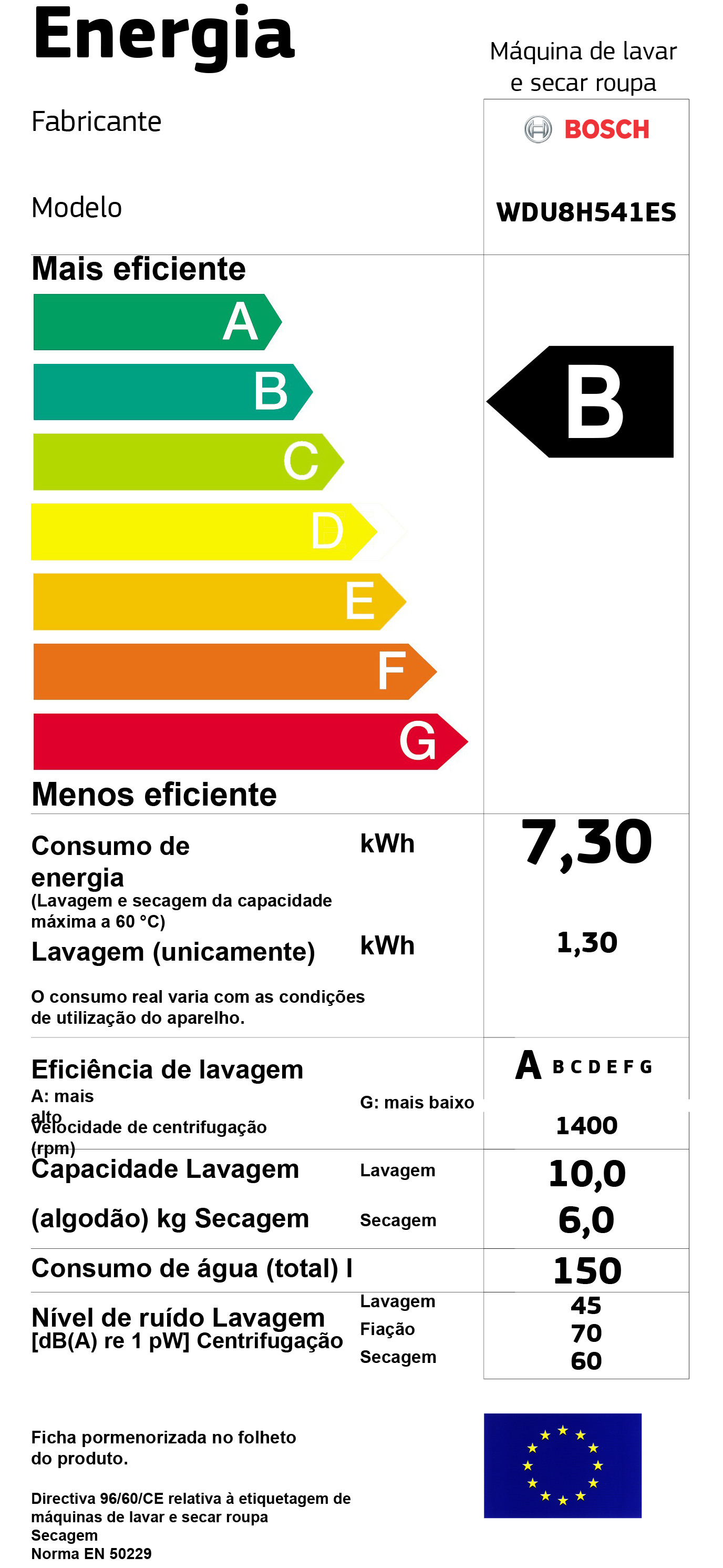 Classe de eficiência de Centrifuação: B