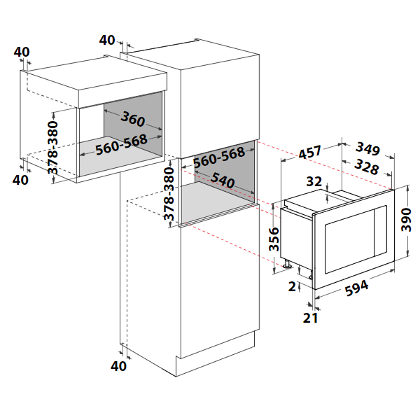 Local de colocação: Embutido, Tipo de produto: Micro-ondas grill, Capacidade interna: 20 l.