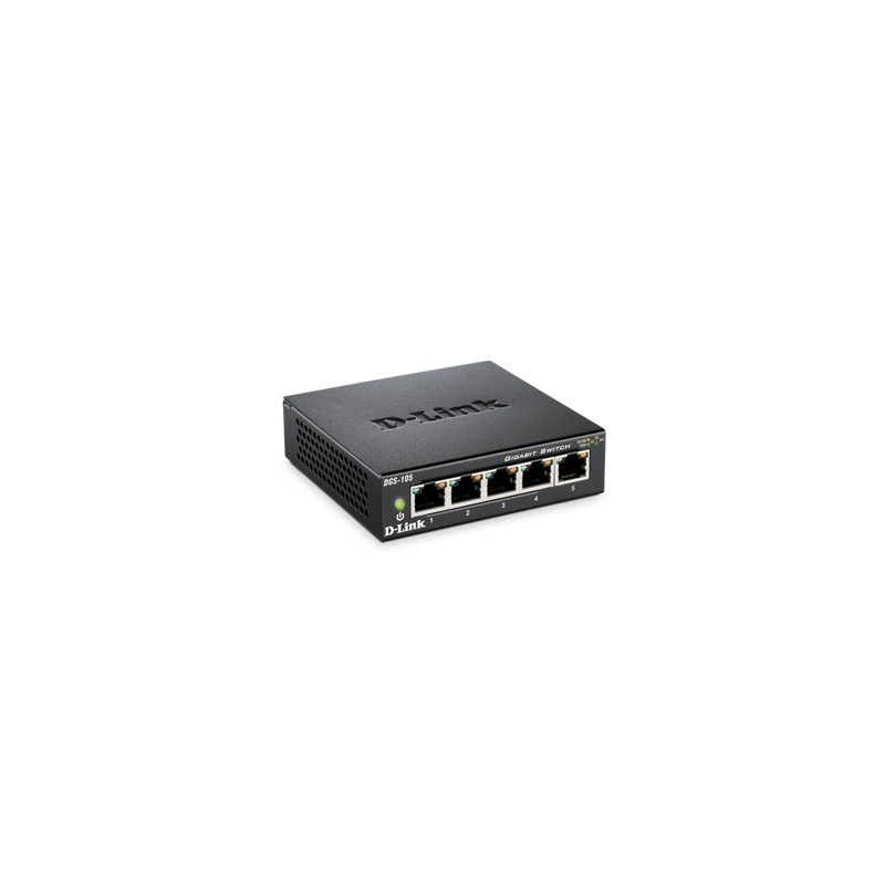 D-Link DGS-105. Switch type: Não-gerido. Copper ethernet cabling technology: 1000BASE-T, 100BASE-TX, 10BASE-T. Normas de Comunicações: IEEE 802.1p, IEEE 802.3, IEEE 802.3ab, IEEE 802.3az, IEEE 802.3u, IEEE 802.3x. Tamanho da tabela de endereços MAC: 2000 entradas, Velocidade de transmissão de dados: 10/100/1000 Mbps, Capacidade de routing/switching: 10 Gbit/s. Cor da caixa: Preto, Visor com LED duplo: Link, Pó, Y, Material do corpo do produto: Metal