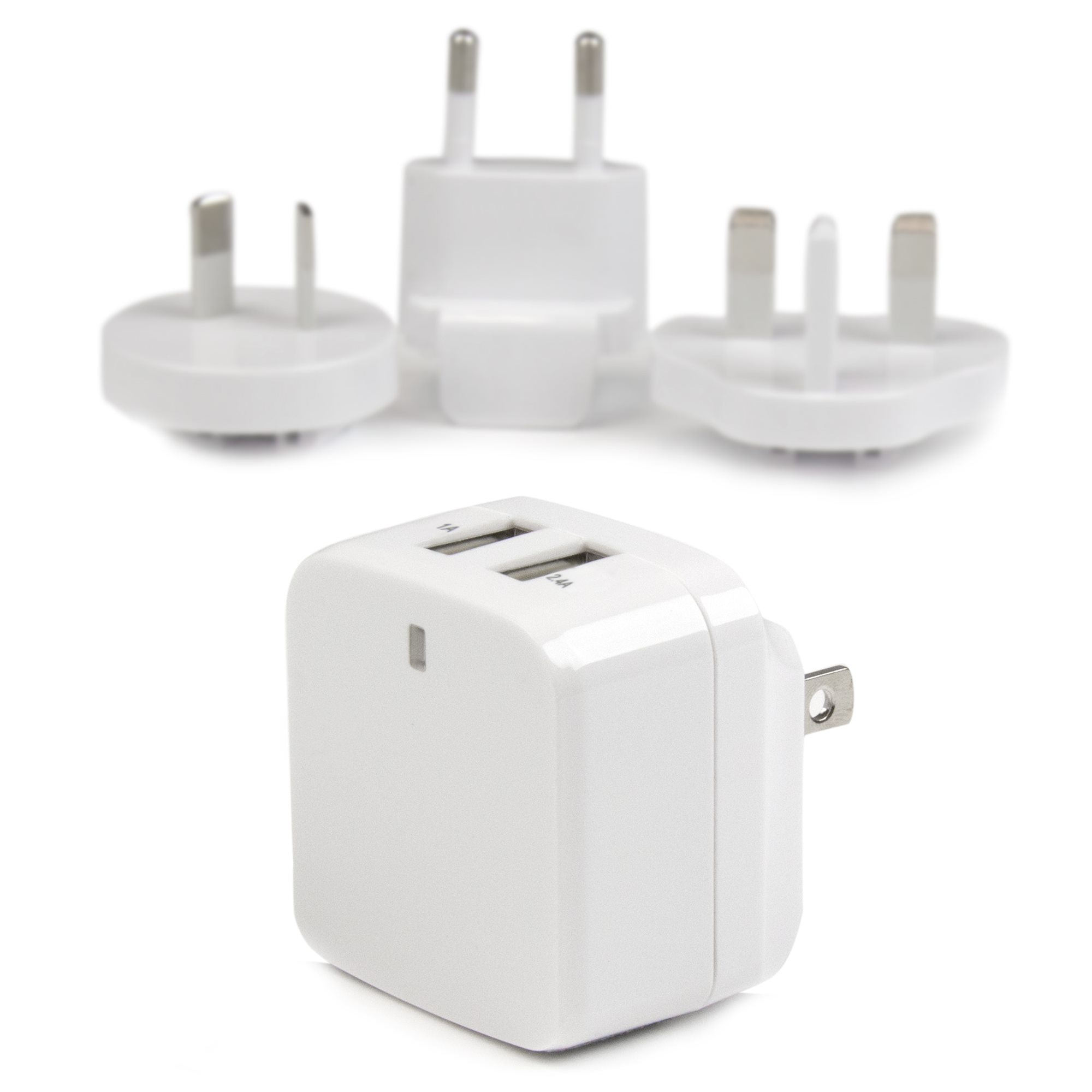 Carregador de parede internacional USB com 2 portas para carregar um tablet e um celular.