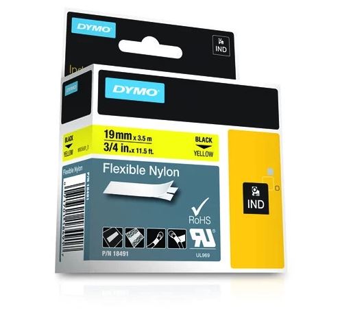 Para rotular fios, cabos e superfícies arredondadas. Etiquetas de nylon flexíveis se adaptam e aderem firmemente a fios, cabos, superfícies curvas e texturizadas. > impressoras matriciais fitas2690NovoProduto LimitadoFita Dymo Nylon Preto Amarelo