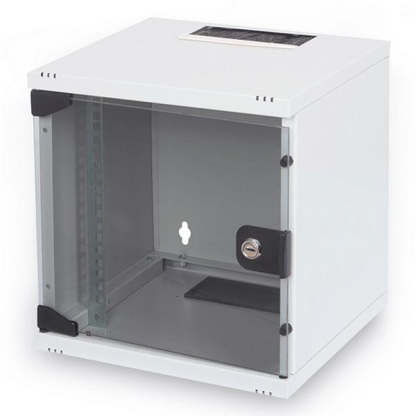 254 mm 10 Wall Mounting Cabinet 6U H330xW312xD300 mm color grey (RAL 7035) glass door > servidores opcoes8990NovoProduto Limitado254 mm 10 Wall Mounting Cabinet 6U H330xW312xD300 mm color grey (RAL 7035) glass door