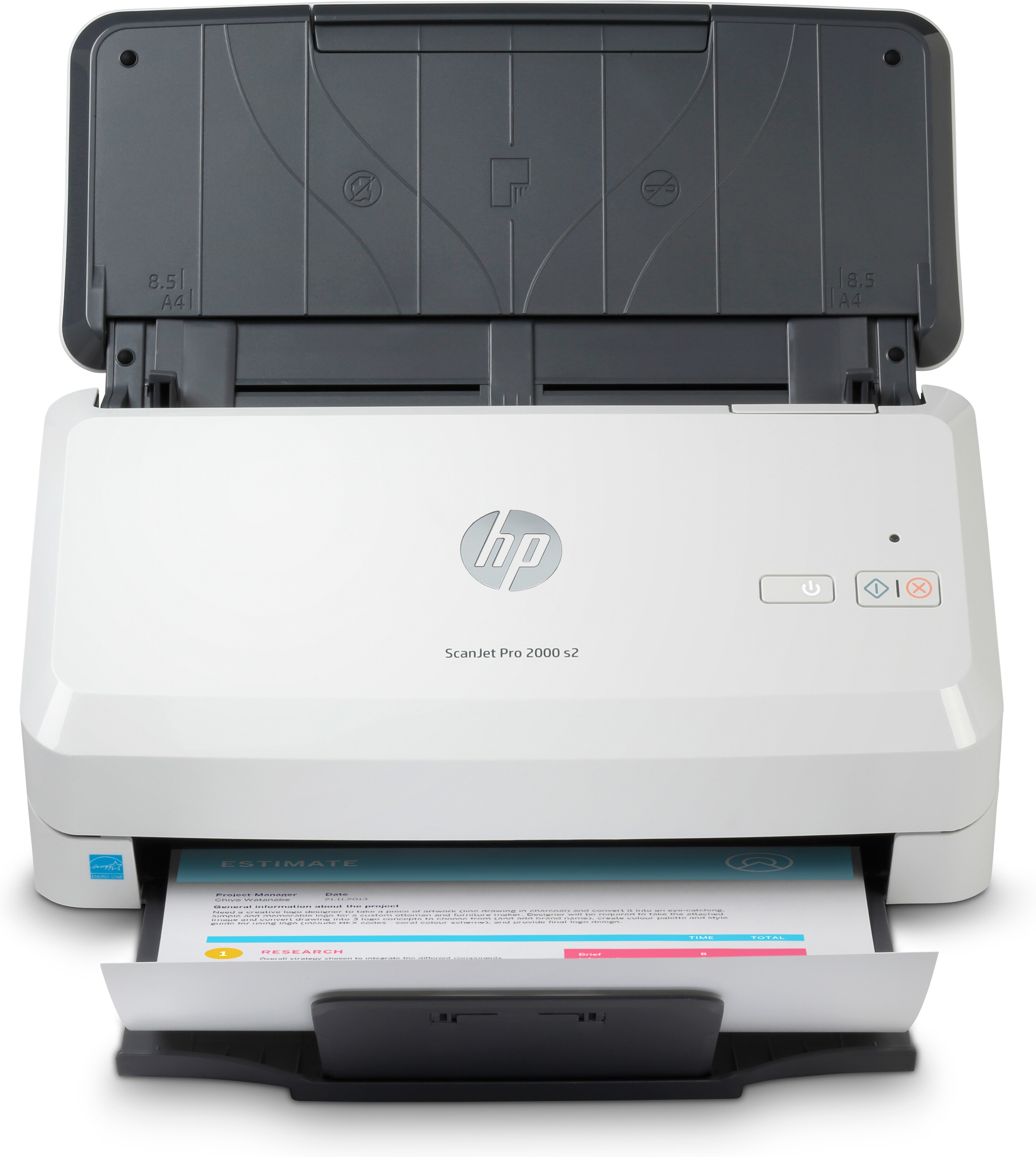 HP Scanjet Pro 2000 s2. Resolução óptica de digitalização: 600 x 600 DPI, Autonomia diária: 3500 páginas. Tipo de scanner: Scanner com alimentação por folhas, Cor do produto: Preto, Branco. Tipo de sensor de imagem: CMOS CIS, Ciclo de tarefa diária (máx): 3000 páginas, Funcionalidades do botão: Grayscale scan. Capacidade do alimentador automático de documentos: 50 folhas. Dimensão máxima de papel ISO A-series: A4