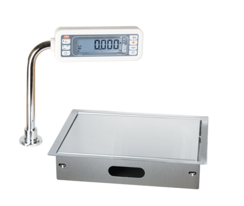 TEM CRS30 - Balança de POS em INOX até 30 Kgs. para embutir em balcão. Ligação por porta série RS232. Tamanho do prato inox: 28x38cm. Inclui mostrador LED de fácil instalação. Opção: Leitor cód. de barras Omnidireccional.