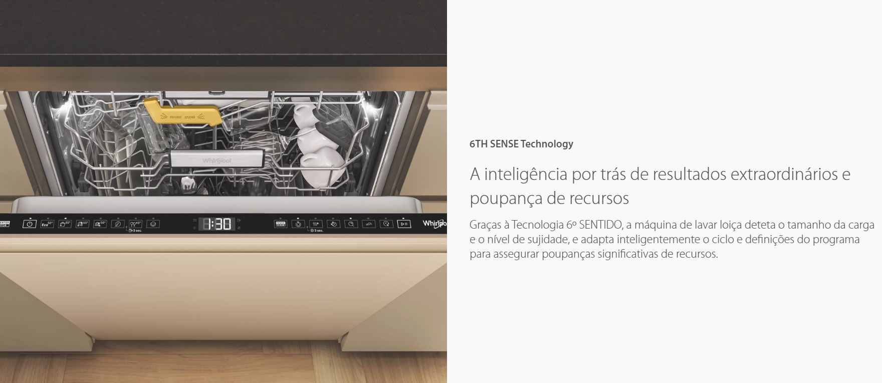 Tecnologia 6º SENTIDONão necessita de pré-lavagem A tecnologia 6º SENTIDO assegura resultados de lavagem perfeitos sem pré-lavagem, imersão ou lavagem à mão, ao mesmo tempo que reduz o consumo de água e os custos.
