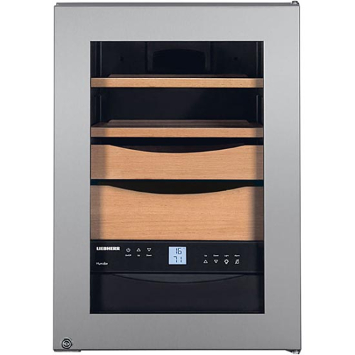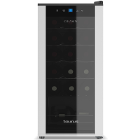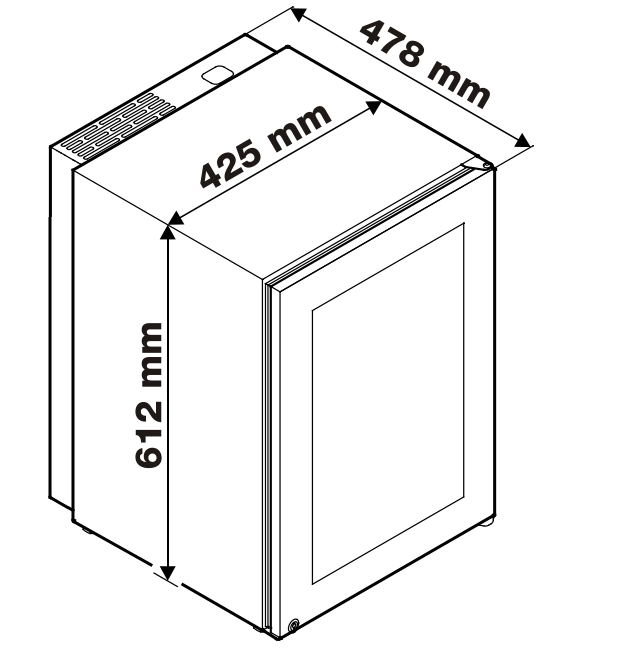 Capacidade útil total 39 l | Classe de eficiência energética | Con. de energia em 365 d./24h. 185 / 0,506 kWh | Nível de ruído re 1 pW | Classe climática N | Tensão 220-240 V | Consumo 0,5 A | Vantagens de equipamento | Tipo de porta Porta de vidro | Material de carroçaria aço inoxidável | Iluminação interior LED | Activação permanente / intensidade regulável • / • | Tipo de comando Controlo electrónico | Indicação da temperatura interior digital | Bloqueio do painel de controlo • | Alarme de anomalia óptico e acústico | Alarme de porta aberta acústico | Processo de descongelação Automática | Ventilação de activação separada | Zonas de temperatura 1 | Escala de temperatura +16°C até +20°C | Humidade do ar 68 % – 75 % | Material das prateleiras Madeira de cedro espanhol | Caixa de apresentação 2 | Compartimento para utensílios | Filtro de carvão activo • | SmartSteel • | Fechadura • | Medidas | Altura x Largura 61,2 x 42,5 cm | Profundidade, sem puxador 47,8 cm > garrafeira / cave de vinhos337390NovoProduto disponível€ 3373.90