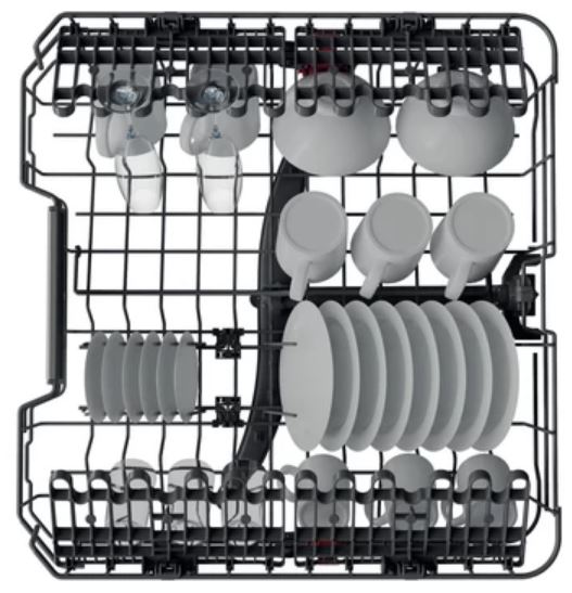 O exclusivo design ExtraSpace permite carregar panelas e frigideiras na vertical, no cesto inferior, proporcionando-lhe espaço para mais 10 pratos.