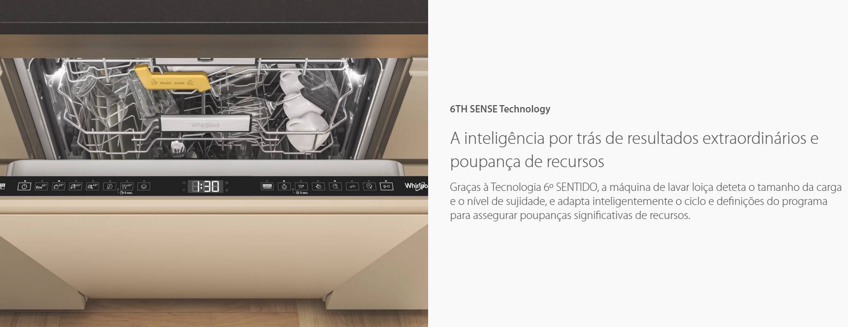 Tecnologia 6º SENTIDONão necessita de pré-lavagem A tecnologia 6º SENTIDO assegura resultados de lavagem perfeitos sem pré-lavagem, imersão ou lavagem à mão, ao mesmo tempo que reduz o consumo de água e os custos.