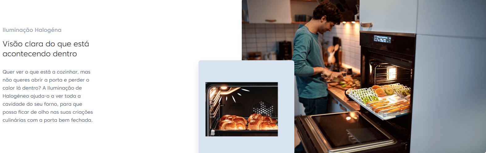 Quer ver o que está a cozinhar, mas não queres abrir a porta e perder o calor lá dentro? A Iluminação de Halogéneo ajuda-o a ver toda a cavidade do seu forno, para que possa ficar de olho nas suas criações culinárias com a porta bem fechada.