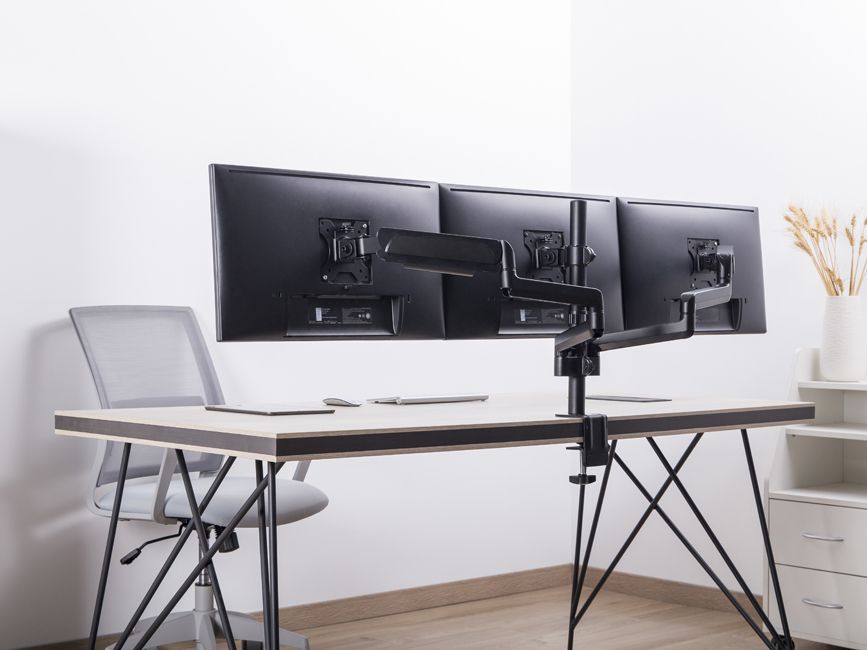 SUPORTE DE MONTAGEM DE MESA PARA MONITOR TRIPLO > suportes para monitores12590NovoProduto disponívelSUPORTE DE MONTAGEM DE MESA PARA MONITOR TRIPLO