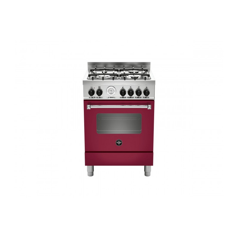 LA GERMANIAFogão LA GERMANIA 7GAMN664EVIT NAT 60 cm 69 LFogão LA GERMANIA  7GAMN664EVIT NAT 60 cm 69 LBertazzoni La Germania Americana AMN664EVIT. Tipo de produto: Fogão independente, Cor do produto: Vermelho, Tipo de controlo: Rotativo. Tipo de boca: Gás, Número de zonas de cozedura: 4 zona(s), Número de zonas de cozedura de gás: 4 zona(s). Tamanho do forno: Médio, Fonte de energia do forno: Eléctrico, Capacidade líquida do forno: 56 l. Ajuste de altura: 6 cm. Classe de eficiência energética: A, Consumo energético (convencional): 0,75 kWh, Potência (elétrica ): 2900 W > gás103290NovoProduto Limitado