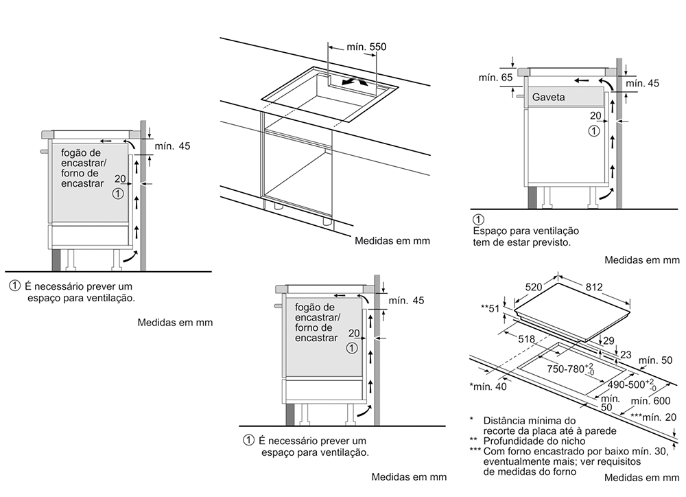Largura mínima de instalação 560 mm
