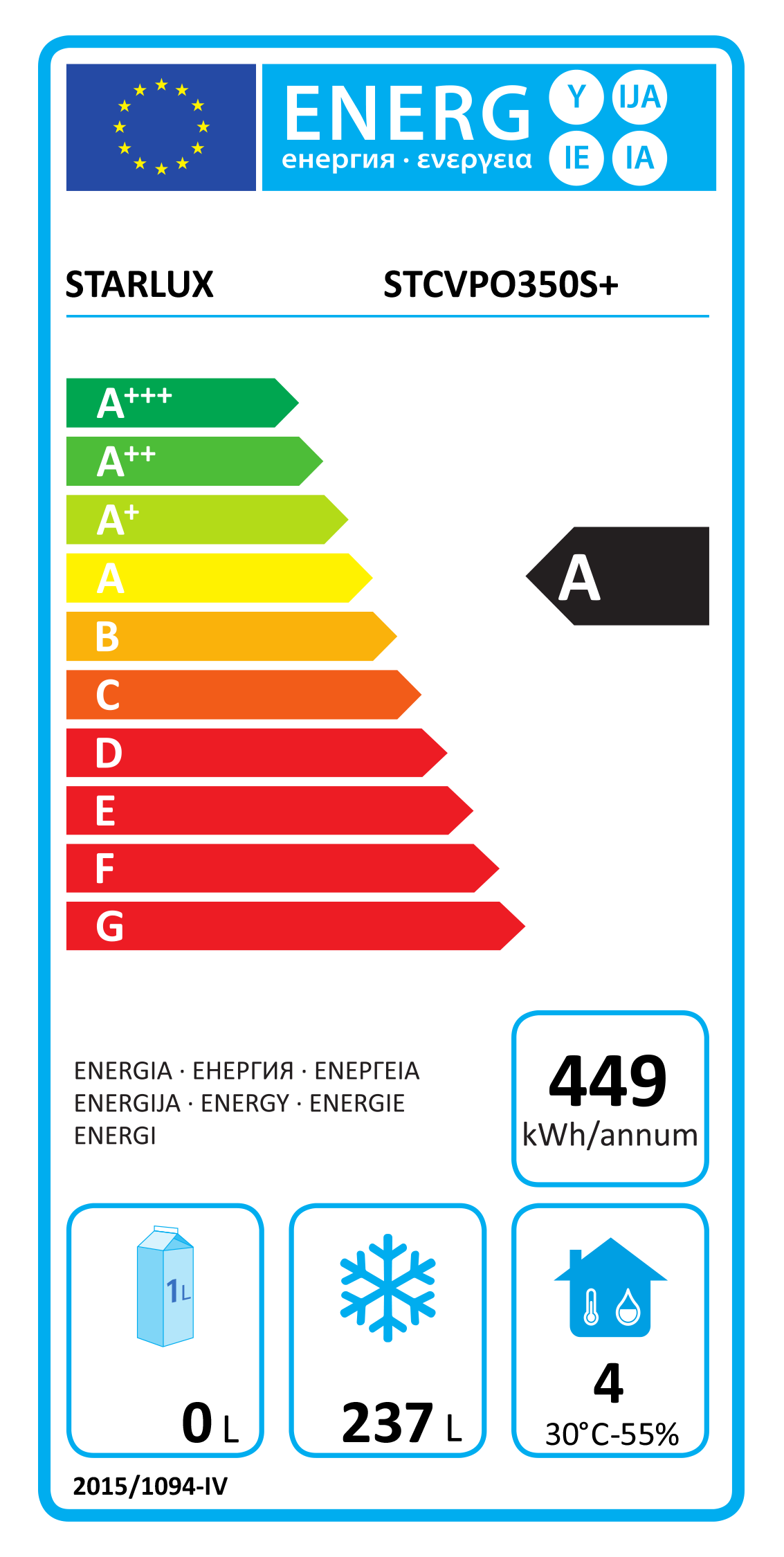 Capacidade útil: 237L |