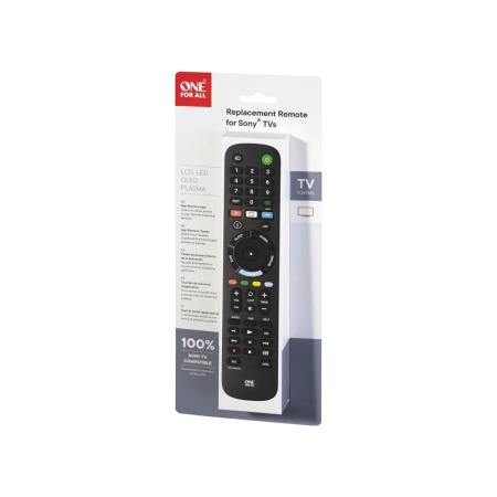 Este mando a distancia de reemplazo Sony de One For All es el repuesto ideal para el mando a distancia original de tu televisor Sony. Funciona exactamente igual que el original. No necesita instalación, simplemente colócale las pilas y ya está listo para su uso con cualquier modelo de televisor Sony. Es compatible con las funciones Sony más comunes. Si lo prefieres, puedes usar de forma fácil una funcionalidad que te permitirá personalizar completamente el mando según tus necesidades. Se trata del único y auté ntico mando a distancia de reemplazo Sony. Especificaciones: NO REQUIERE INSTALACIN. Simplemente coloca las pilas y empieza a usar tu mando a distancia de reemplazo para tu televisor Sony. FUNCIONA EXACTAMENTE IGUAL QUE TU MANDO A DISTANCIA Sony ORIGINAL- El mando a distancia de reemplazo Sony One For All es compatible con las funciones de Sony más comunes como Herramientas y Guía. FUNCIONA CON TODO TIPO DE TELEVISORES Sony - El mando a distanc...