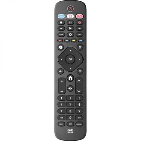 Este mando a distancia de reemplazo Philips de One For All es el repuesto ideal para el mando a distancia original de tu televisor Philips. Funciona exactamente igual que el original. No necesita instalación, simplemente colócale las pilas y ya está listo para su uso con cualquier modelo de televisor Philips. Es compatible con las funciones Philips más comunes. Si lo prefieres, puedes usar de forma fácil una funcionalidad que te permitirá personalizar completamente el mando según tus necesidades. Se trata del único y auté ntico mando a distancia de reemplazo Philips. Especificaciones: NO REQUIERE INSTALACIN. Simplemente coloca las pilas y empieza a usar tu mando a distancia de reemplazo para tu televisor Philips. FUNCIONA EXACTAMENTE IGUAL QUE TU MANDO A DISTANCIA Philips ORIGINAL- El mando a distancia de reemplazo Philips One For All es compatible con las funciones de Philips más comunes como Herramientas y Guía. FUNCIONA CON TODO TIPO DE TELEVISORES...