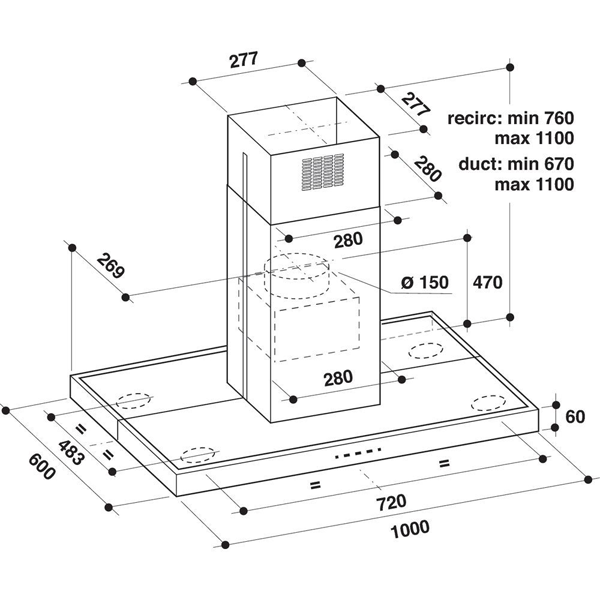 Aspiração/Extracção: 713 m3/horaEf. fluído dinâmica: B Ef. iluminação: A Ef. filtragem gordura: C Nº de Velocidades: 4 Classe Energética: B Consumo: 79,7 kWh/anoNº de Motores: 1 Nº de Lâmpadas: 4 Filtro: Alumínio Nível de Ruído: 69 dBAltura: 77 / 111 cmLargura: 100 cmProfundidade: 60 cmCor: Aço inoxidável Garantia: 3 anos- > chaminé ilha81890NovoProduto disponível€ 818.90