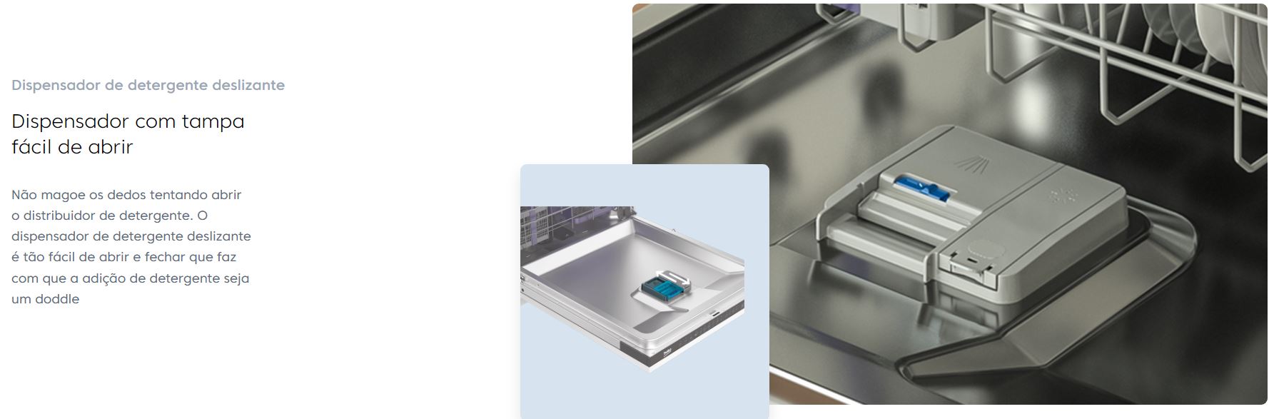 Não magoe os dedos tentando abrir o distribuidor de detergente.