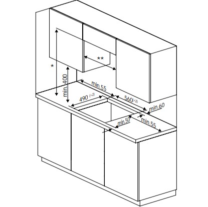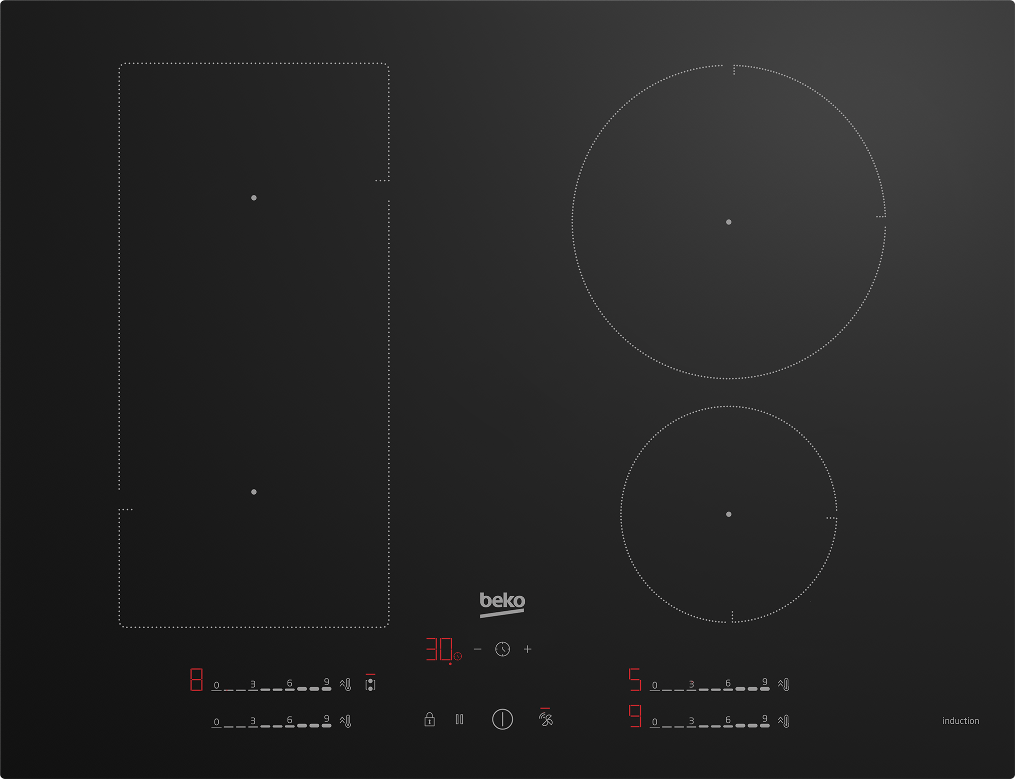 Configuração do Queimador:4 Zonas de Indução com 1 Flexizone