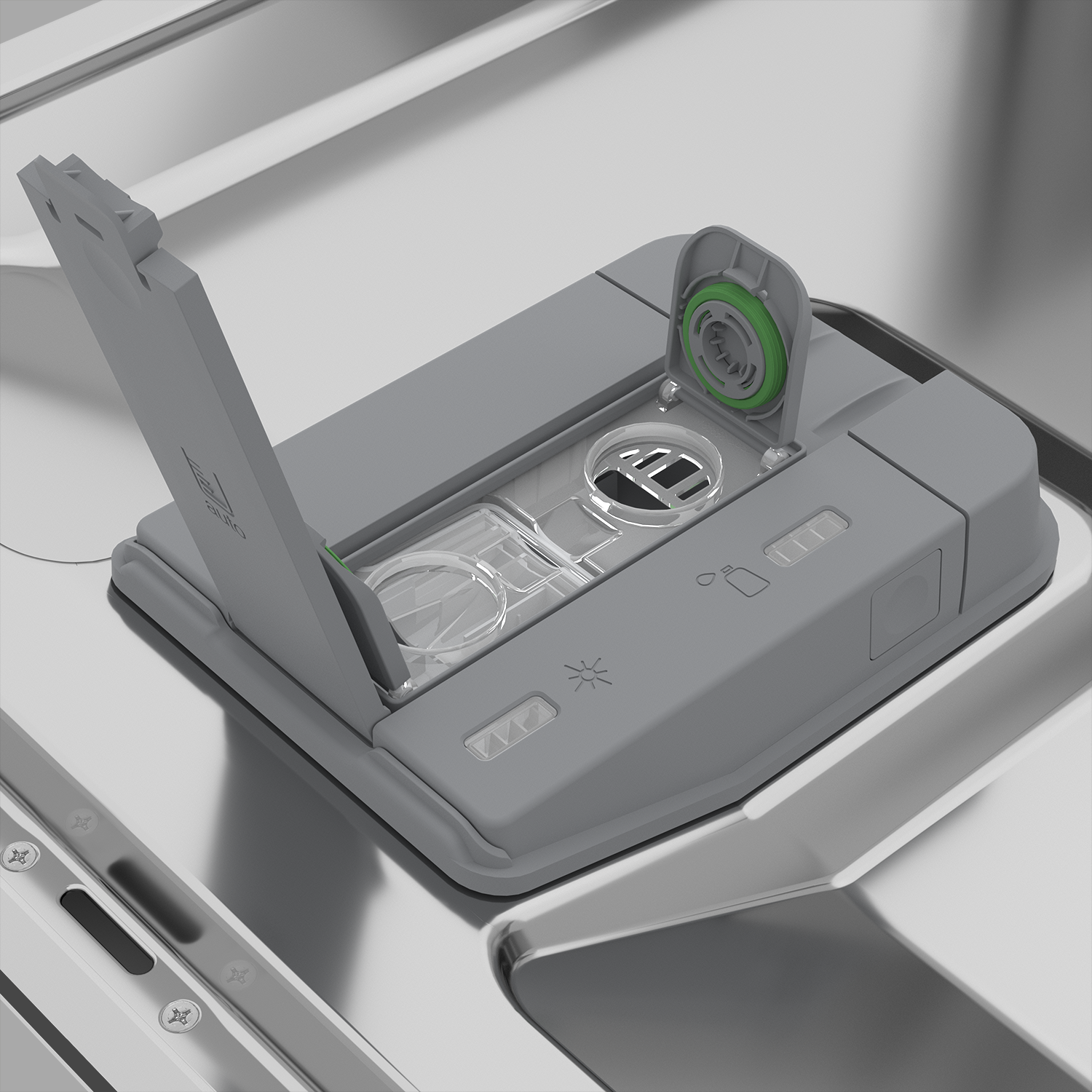 Basta encher a sua máquina de lavar louça com detergente líquido e deixar o AutoDose dispensar automaticamente o suficiente durante um mês.
