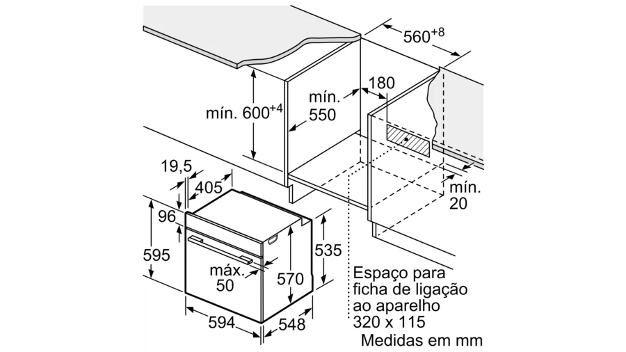 Dimensões do aparelho (AxLxP): 595 x 594 x 548 mm
