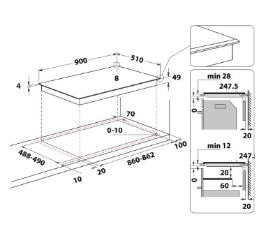Placa Inducao Encastre HOTPOINT HT 1090 BA 6 x 90 x 51 Cm