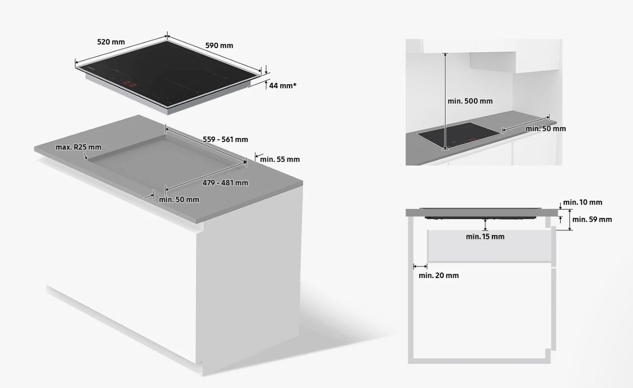 Placa Inducao Encastre SAMSUNG NZ64B5046GK 590 X 48 X 520 mm