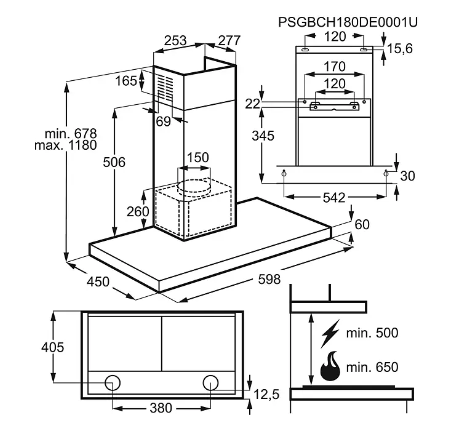 Nome do produto: Chaminé de parede de 60 cm e 51 dB(A)