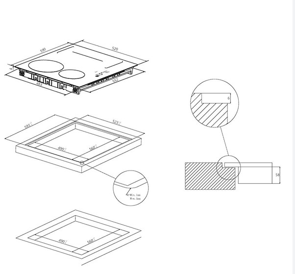 Placa Inducao Encastre CANDY CTP6SC4 E14U 7 x 59 x 52 Cm
