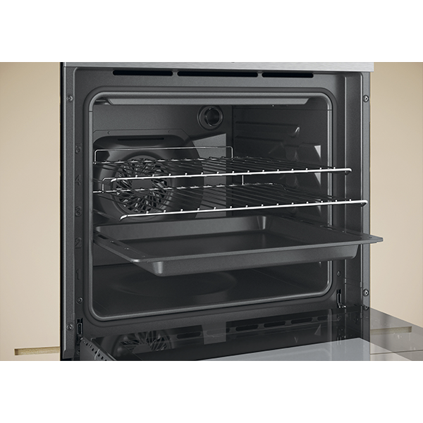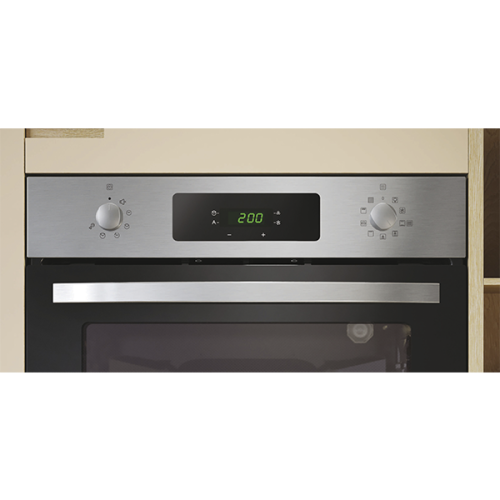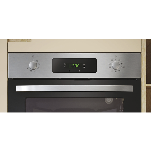 Tipo: Multifunções Estética: Timless Acabamento: Inox CARACTERÍSTICAS ESTRUTURAIS E FUNCIONAIS Aqua Activa Nº de ventoínhas para cozedura: 1 Sistema de autolimpeza: Pirólitica Controlo electrónico por toque com display XL (Touch Display) Botões: Inox Temporizador Controlo electrónico da temperatura Modos de cozedura: 9 Camadas de vidro na porta: 3 Grelhador (Turbo Grill) Pega em Inox Porta Fria Porta exterior: Vidro Porta interior totalmente em vidro Sistema de refrigeração por ventoínha ACESSÓRIOS Prateleiras: 2 Tabuleiro para assados: 1 DESEMPENHOS Classe eficiência energética: A Consumo energia cozedura convencional: 0,98 kWh ESPECIFICAÇÕES TÉCNICAS Volume: 65 l Temperatura máxima: 245ºC Potência máxima absorvida: 2,1 kW OUTROS DADOS Dimensões do produto AxLxP: 59,5x59,5x56,8 cm Peso do produto: 31 Kg Dimensões necessárias para o encastre AxLxP: 59x56x56 cm