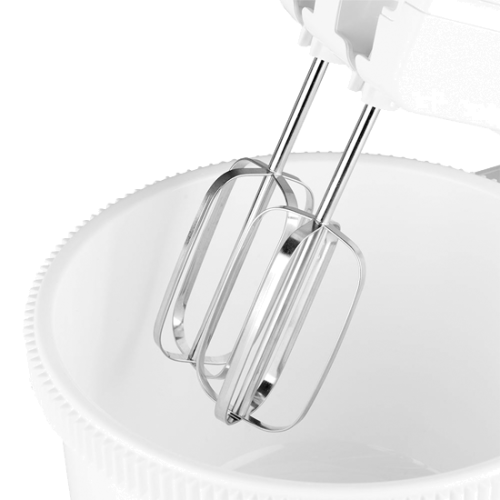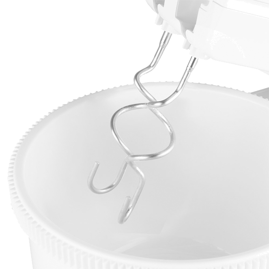Potencia: 300 W. 5 velocidades. Funcão turbo. Bate, mistura, emulsiona e amassa todo o tipo de ingredientes 2 batedores de aço inoxidável para ovos e creme 2 ganchos em aço inoxidável para misturar massa Espátula incluida. Taça rotativa de 3,5 L. Cabeça removível para uso independente sem tigela Botão para ejetar os acessórios Fácil limpeza. Utensílio aptos para a máquina de lavar louça Pés antiderrapantes